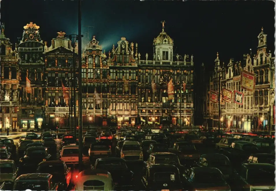 Postkaart Brüssel Bruxelles Grand Place bei Nacht Autos VW Käfer 1975