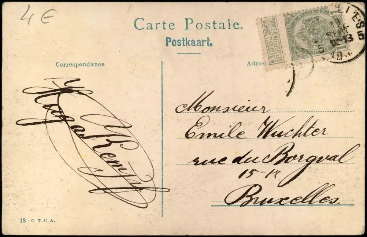 Postkaart Brüssel Bruxelles Square du Sablon 1913