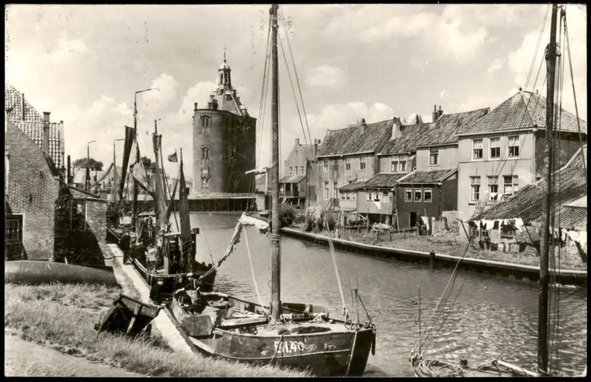 Postkaart Enkhuizen Drommedaris, Boote 1961