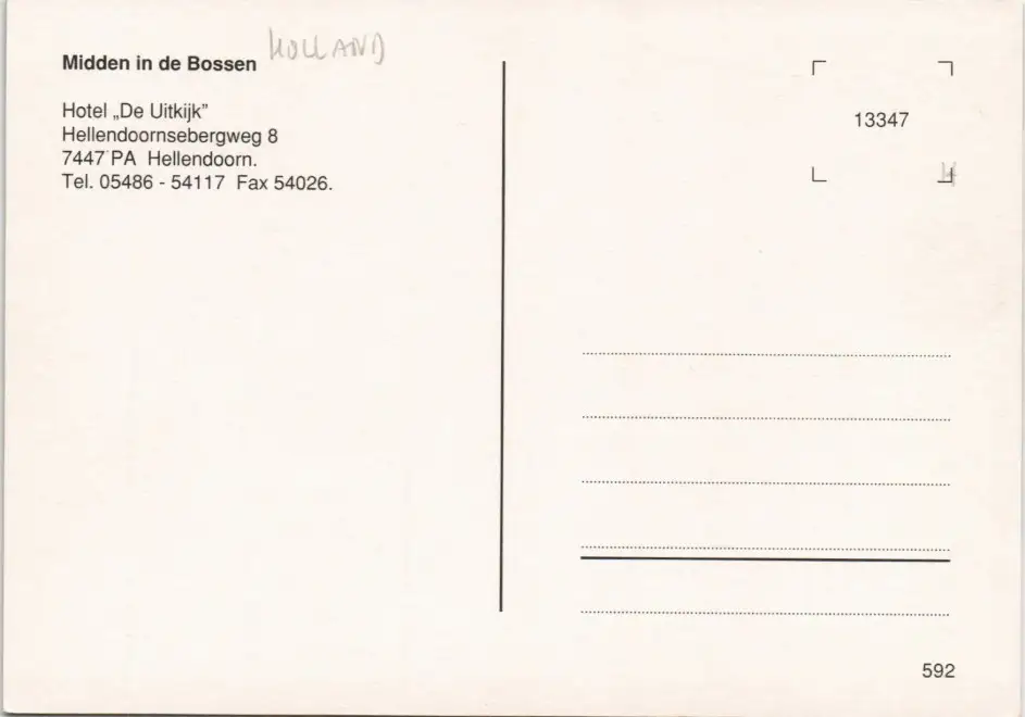 Postkaart Hellendoorn Hotel De Uitkijk 1975