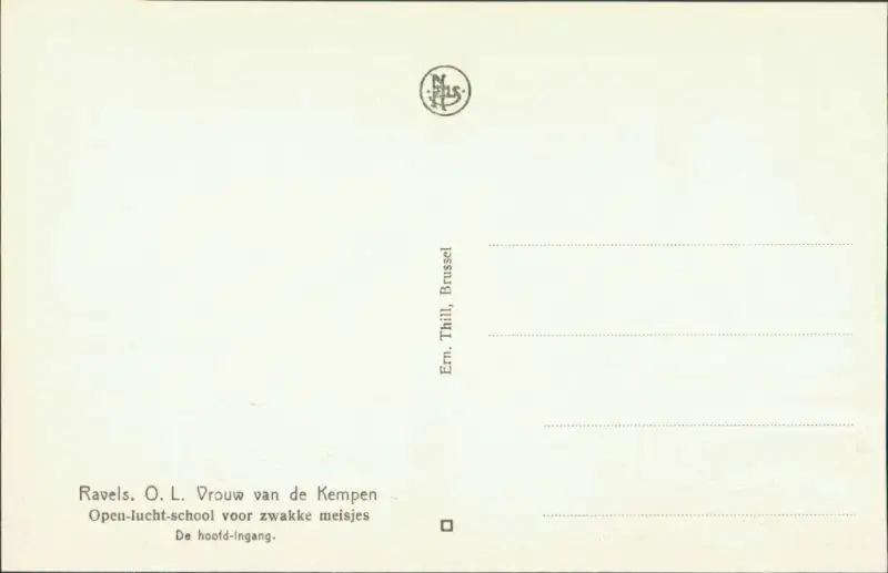Postkaart Ravels Open-lucht-school - Eingang 1928
