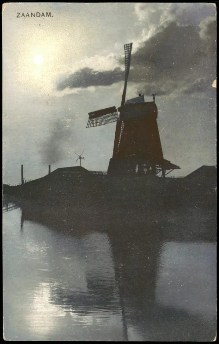 Postkaart Zaandam Windmühlen Stimmungsbild Photochromie 1913