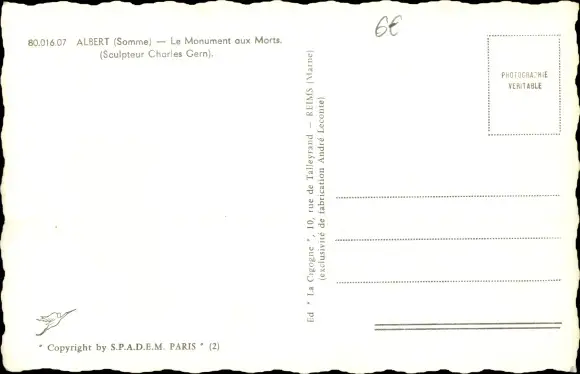 Postkarte Albert Somme, Das Kriegsdenkmal