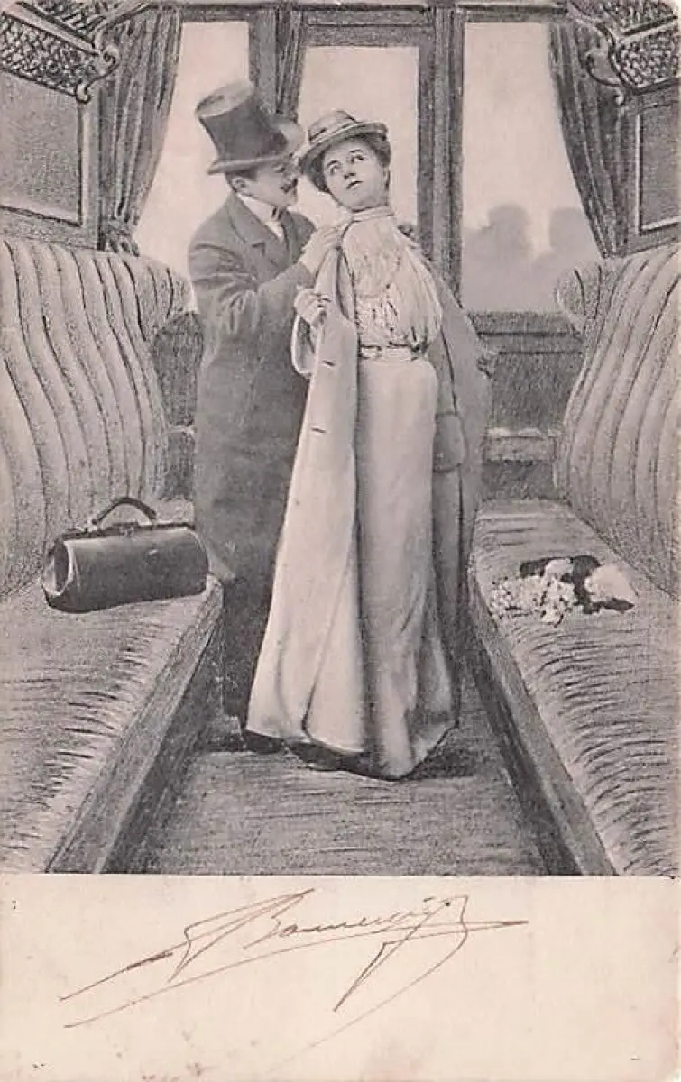 Postkarte - Alte Zeiten - Bahnreisen Kitsch -793146
