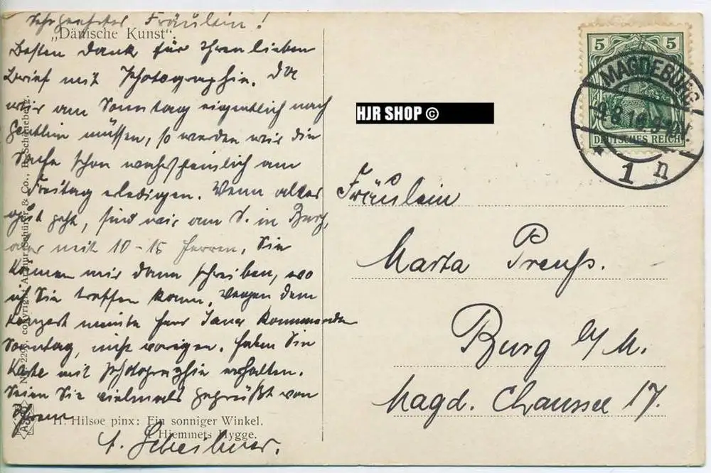Postkarte: Dänische Kunst gelaufen, Magdeburg, 9.08.1916 kl. Format, col., I-II, (Eck. Best.) Maße:14 x 9 cm, gute Erhaltung