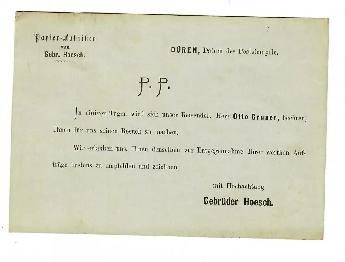 Postkarte Düren, Papier Fabrik, 1878 nach Kassel