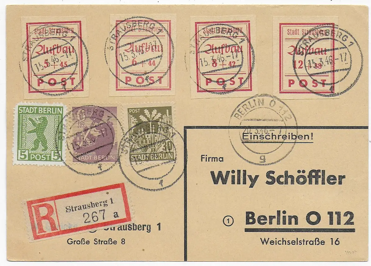 Postkarte Einschreiben Strausberg 1946 nach Berlin