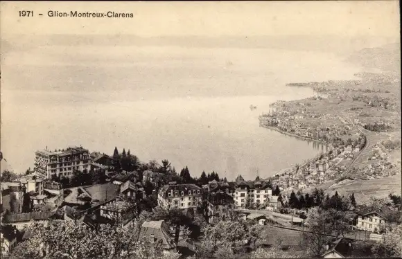 Postkarte Glion Montreux Kanton Waadt, Clarens, Teilansicht
