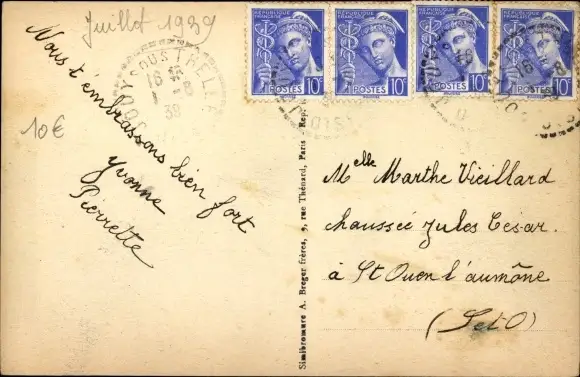 Zustand, siehe Scan, gelaufen, 1939 - ca 14 cm X 9 cm