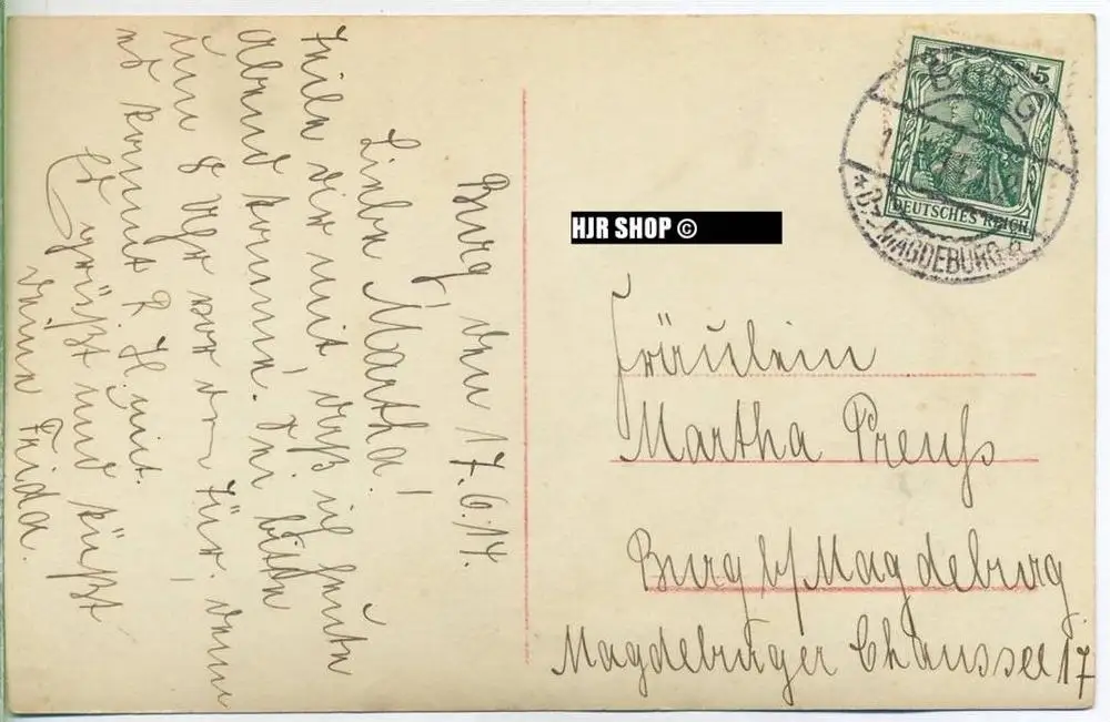 Postkarte: Mädchen gelaufen, Burg, 17.06.1914 kl. Format, s/w., I-II, (Eck. Best.) Maße:14 x 9 cm, gute Erhaltung