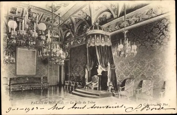 Postkarte Monaco, Der Thronsaal
