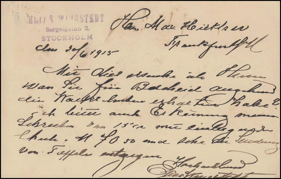 Postkarte P 34 BREVKORT König Gustav Druckdatum 214, STOCKHOLM 1.7.1915