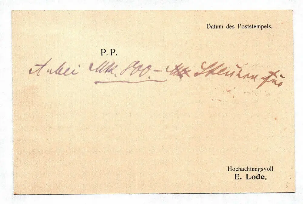 Postkarte P.P. Hermann Emil Lode Import Export Briefmarken Ak