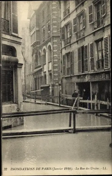 Postkarte Paris IV, Rue des Ursins, Die große Seine-Flut Januar 1910
