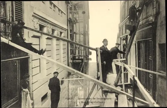 Postkarte Paris-V, Rue de l'Hôtel Colbert, Die große Seine-Flut Januar 1910