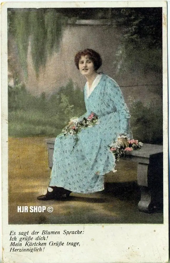 Postkarte, junge Frau gelaufen, 20.03.1918/ kl. Format, col., I-II, (Eck. Best.) Maße:14 x 9 cm, gute Erhaltung