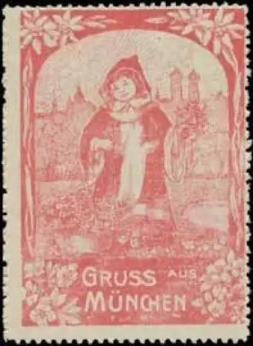 Gruss aus München, Spezialität: Postkarten, Münchner Kindl, Größe/Zustand: 6x4 , guter Zustand, Original alte Reklamemarke die seinerzeit für die Werbung benutzt wurde