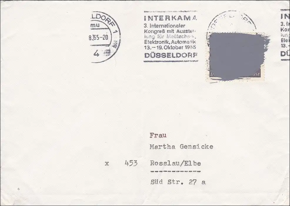Postkrieg von 1965 - Düsseldorf nach Rosslau