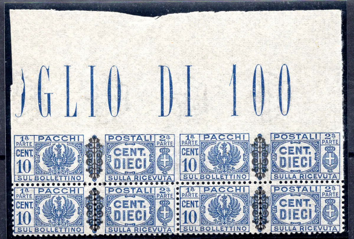 ** MNH - Postpakete Cent. 10 Fries Nr. 49fa Viertel b. von f. mit zwei gezackten Exemplaren nur unten - Selten - Kat. 540 n. 494/19