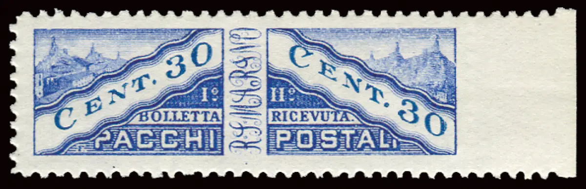 Postpakete Cent. 30 Sorten ungezähnt rechts Vollgummi MNH - Postpakete Cent. 30 n. 5h ungezähnt rechts b. von f. - Selten - Kat. 450 Cod. 808/15