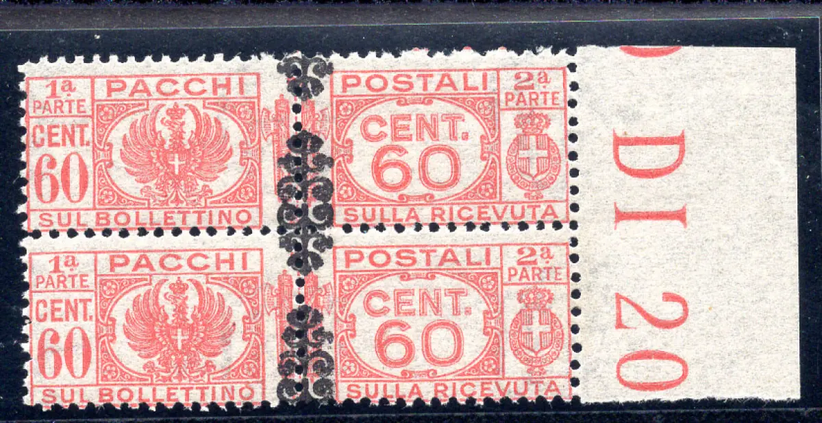 Postpakete Cent. 60 Fries Paar Aufdruck nach unten verschoben Vollgummi - Postpakete Cent. 60 Fries Nr. 53bb Vertikaldrehmoment mit stark nach unten verschobenem Aufdruck (zu Pferd) - Kat. euro 110 Code 284/11