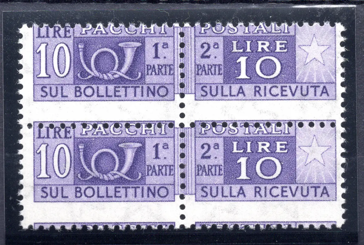 Postpakete Lire 10 Paar Sorten verschobene Verzahnung ** MNH - Postpakete Lire 10 Nr. 85/I Vertikaldrehmoment mit stark verschobener horizontaler Verzahnung (Sass. spec. n. 63Ea) - Kat. euro 110 n. 795/20