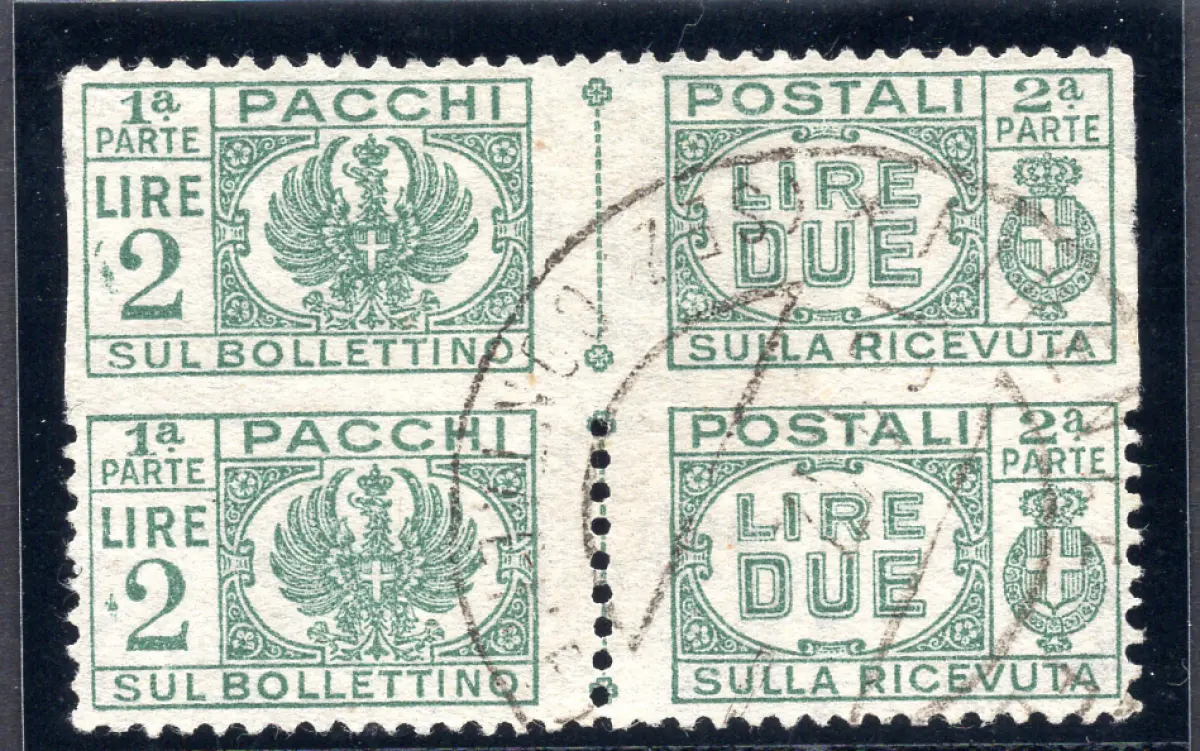 Postpakete Lire 2 Sorten Paar ungezähnt in der Mitte Gebraucht - Postpakete Lire 2 Nr. 61l Standpaar ungezahnt in der Mitte mit dem Obermaterial nicht senkrecht gezahnt - Edelsorte nur gebraucht bekannt - Kat. 1.300 Cod. 165/13