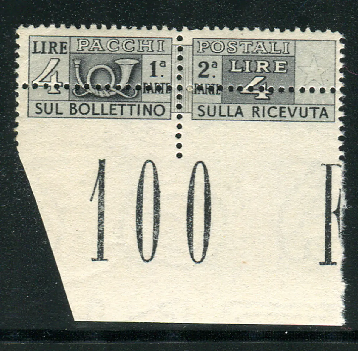 Postpakete Lire 4 Sorten untere Verzahnung Vollgummi - Postpakete Lire 4 Nr. 71/Iaac mit stark nach oben verschobener Unterverzahnung b. von f. komplett Cod. 898/13