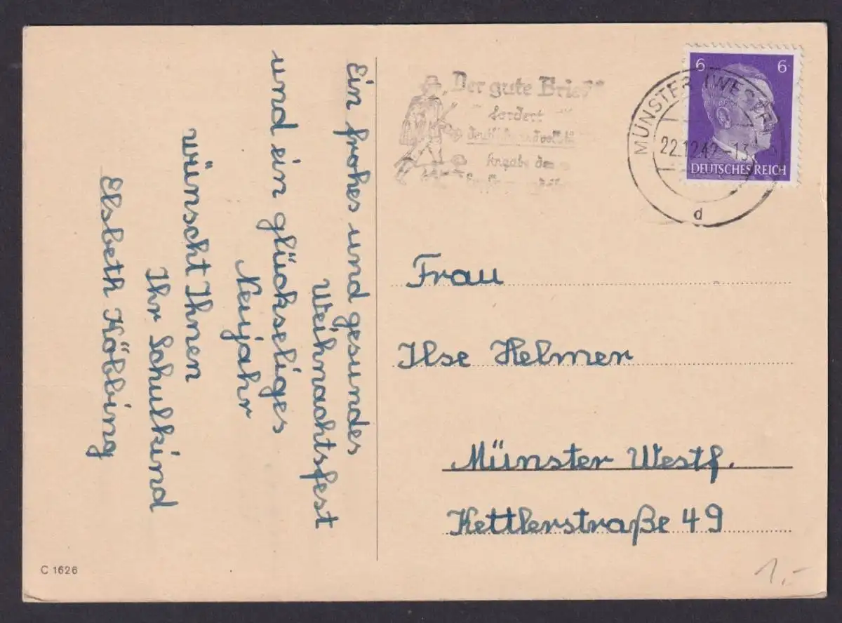 Ansichtskarte 22.12.1942 Unsere Ebay - Freunde, die keine Neuigkeiten mehr verpassen möchten, folgen uns doch bitte einfach auf ebay. Wie das geht? Einfach auf den blauen Button - rechts - "Diesem Verkäufer speichern" klicken. We invite you to follow us on ebay so that you never miss our best offers. Nahues Online Auktionen Philatelie Briefmarken Postgeschichte Münzen Geldscheine Ansichtskarten Deutschland Europa Übersee