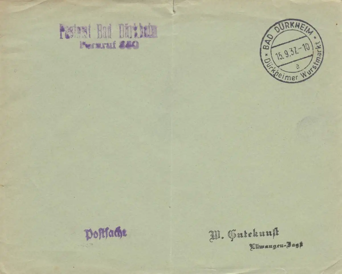 Postsache Kuvert 1937: Bad Dürkheim: Dürkheimer Wurstmarkt