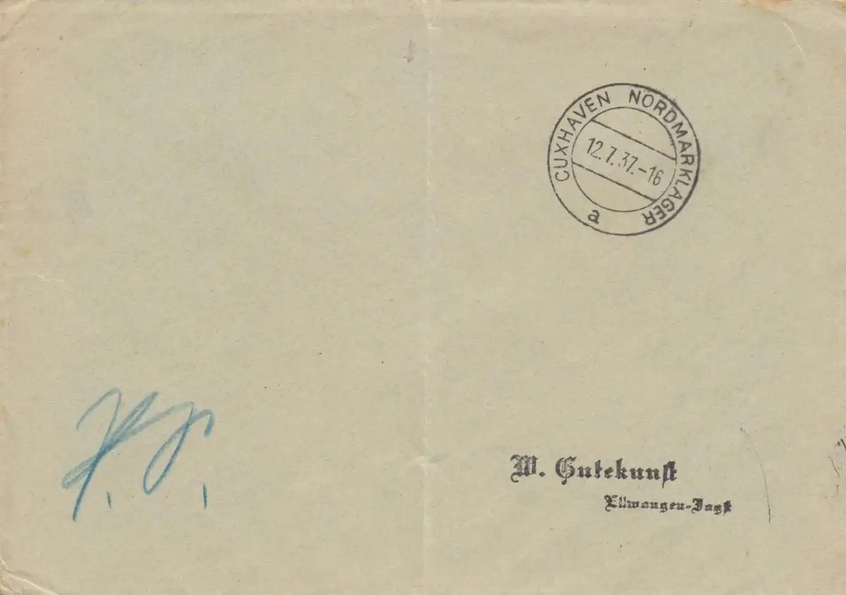 Postsache Kuvert 1937 Cuxhaven Nordmarklager - a