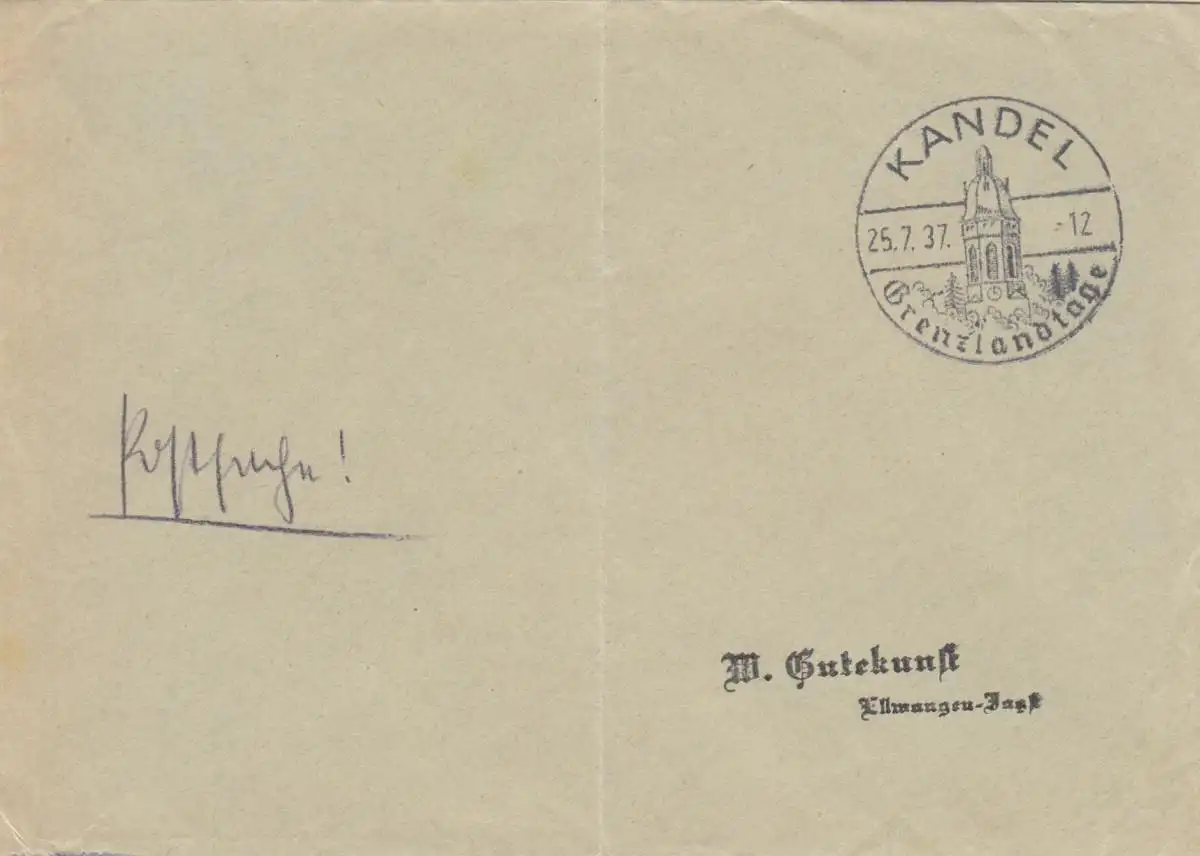 Postsache Kuvert 1937: Kandel Grenzlandtage