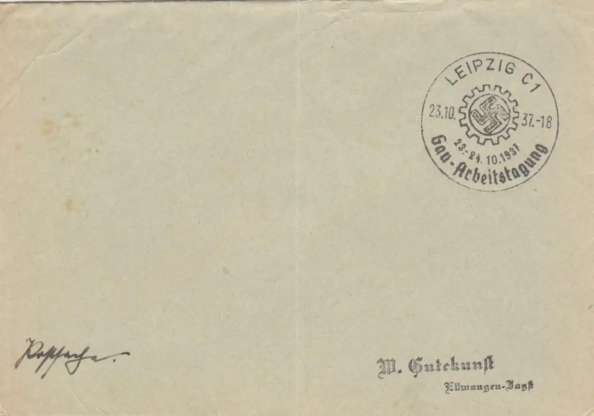 Postsache Kuvert 1937: Leipzig Gau-Arbeitstagung
