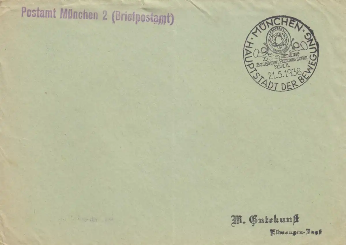 Postsache Kuvert 1938: München Ganzsachen Sammler Verein, Sonderstempel