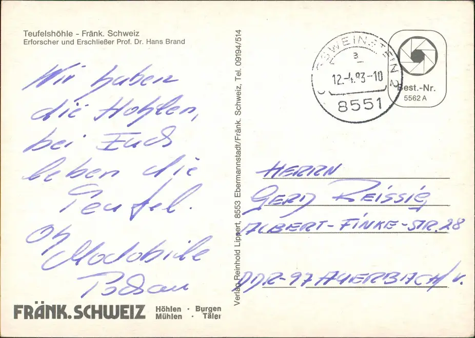 Pottenstein Naturpark Fränische Schweiz Teufelshöhle Höhlen Ansichten 1983