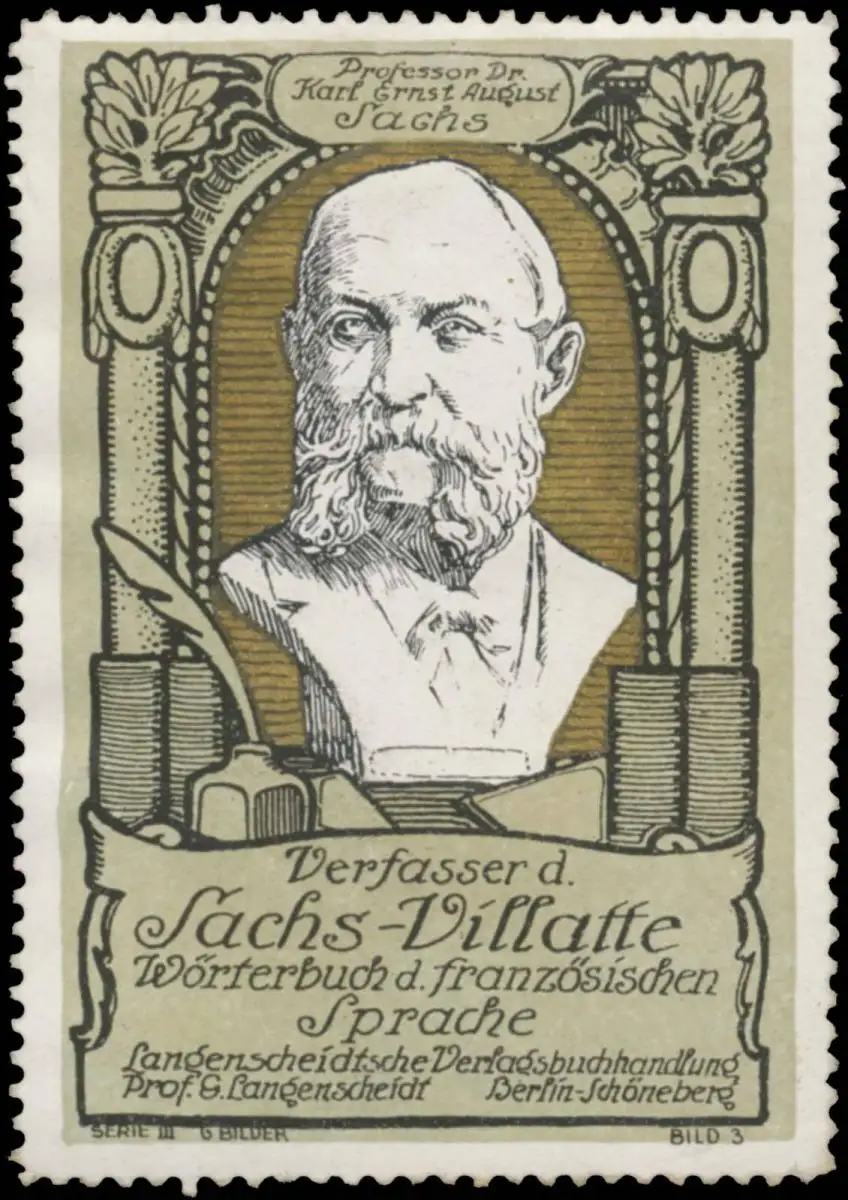 Verfasser des Sachs-Villatte Wörterbuch, Größe/Zustand: 6x4 , guter Zustand, Original alte Reklamemarke die seinerzeit für die Werbung benutzt wurde