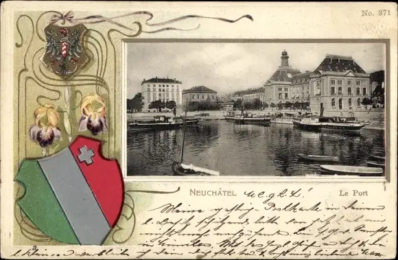 Präeg Wappen Ak Neuchâtel Neuenburg Stadt, Hafenpartie