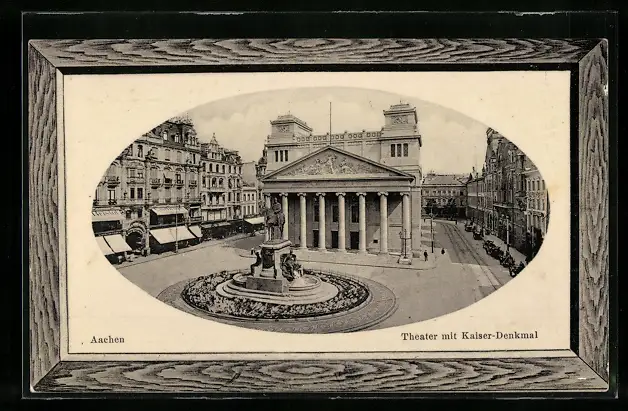 Präge-AK Aachen, Theater mit Kaiser-Denkmal, Passepartout