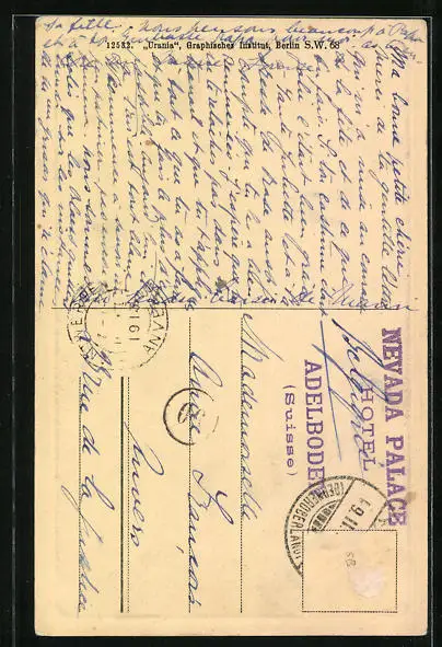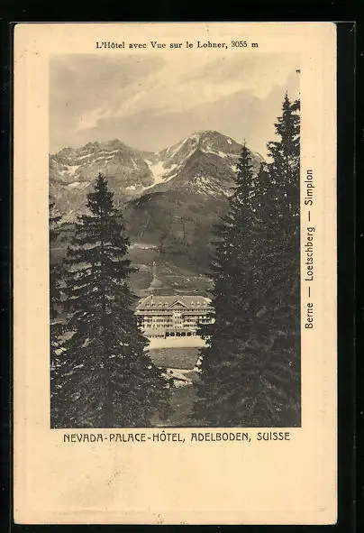 Präge-AK Adelboden, Blick vom Wald auf das Nevada-Palace-Hotel