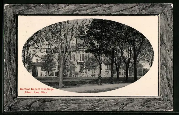 Präge-AK Albert Lea, MN, Central School Buildings, Passepartout