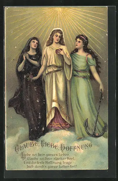 Präge-AK Allegorie für Glaube, Liebe und Hoffnung