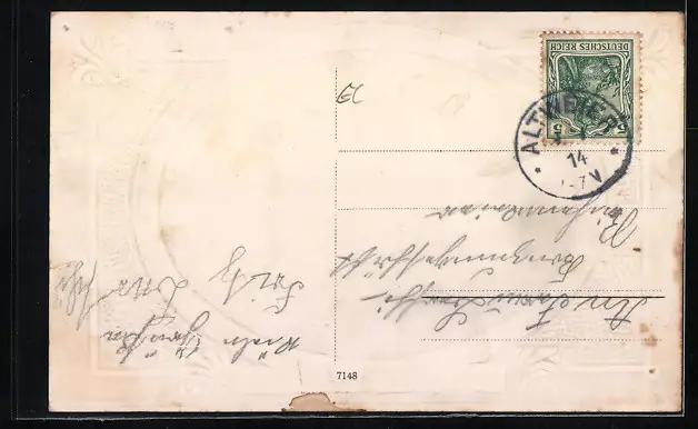 alte Ansichtskarte, gelaufen 1914, minimaler Einriss re. mittig, guter Zustand