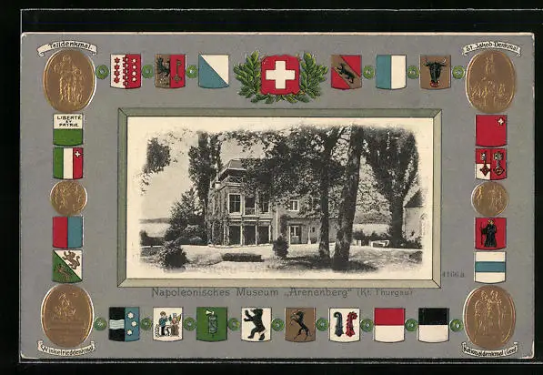 Präge-AK Arenenberg, Napoleonisches Museum, Wappen der Kantone