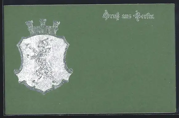 Präge-AK Berlin, Weisses Ortswappen auf grünem Hintergrund