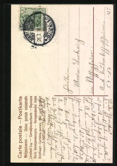 alte Ansichtskarte, gelaufen, Stempelspur, guter Zustand