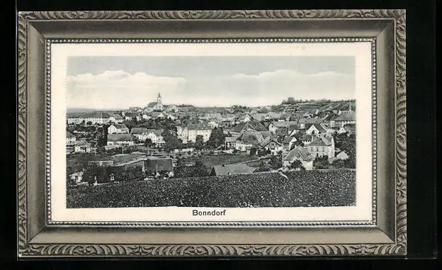 Präge-AK Bonndorf, Teilansicht, Passepartout