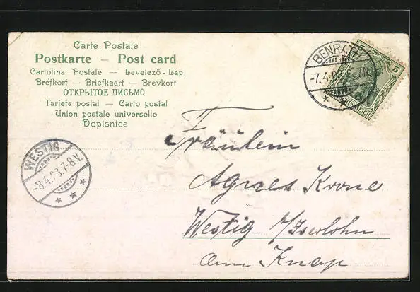 alte Ansichtskarte, gelaufen 1908, Eckknick oben re., Stempelspur, guter Zustand