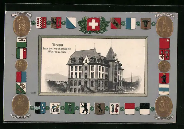 Präge-AK Brugg, Landwirtschaftliche Winterschule mit Wappen