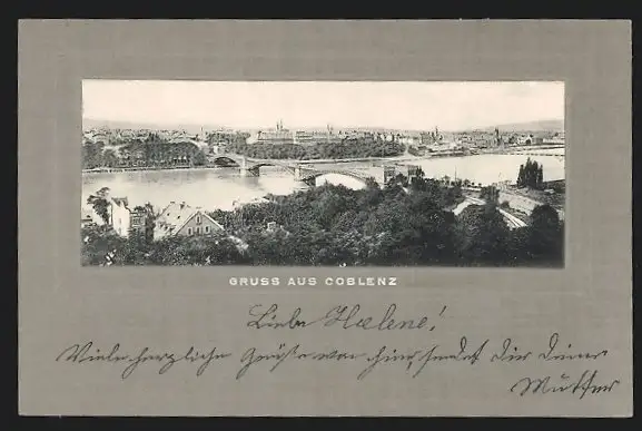 Präge-AK Coblenz, Uferpartie mit Brücke