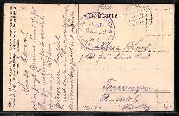 alte Ansichtskarte, gelaufen 1915 als Feldpost, guter Zustand